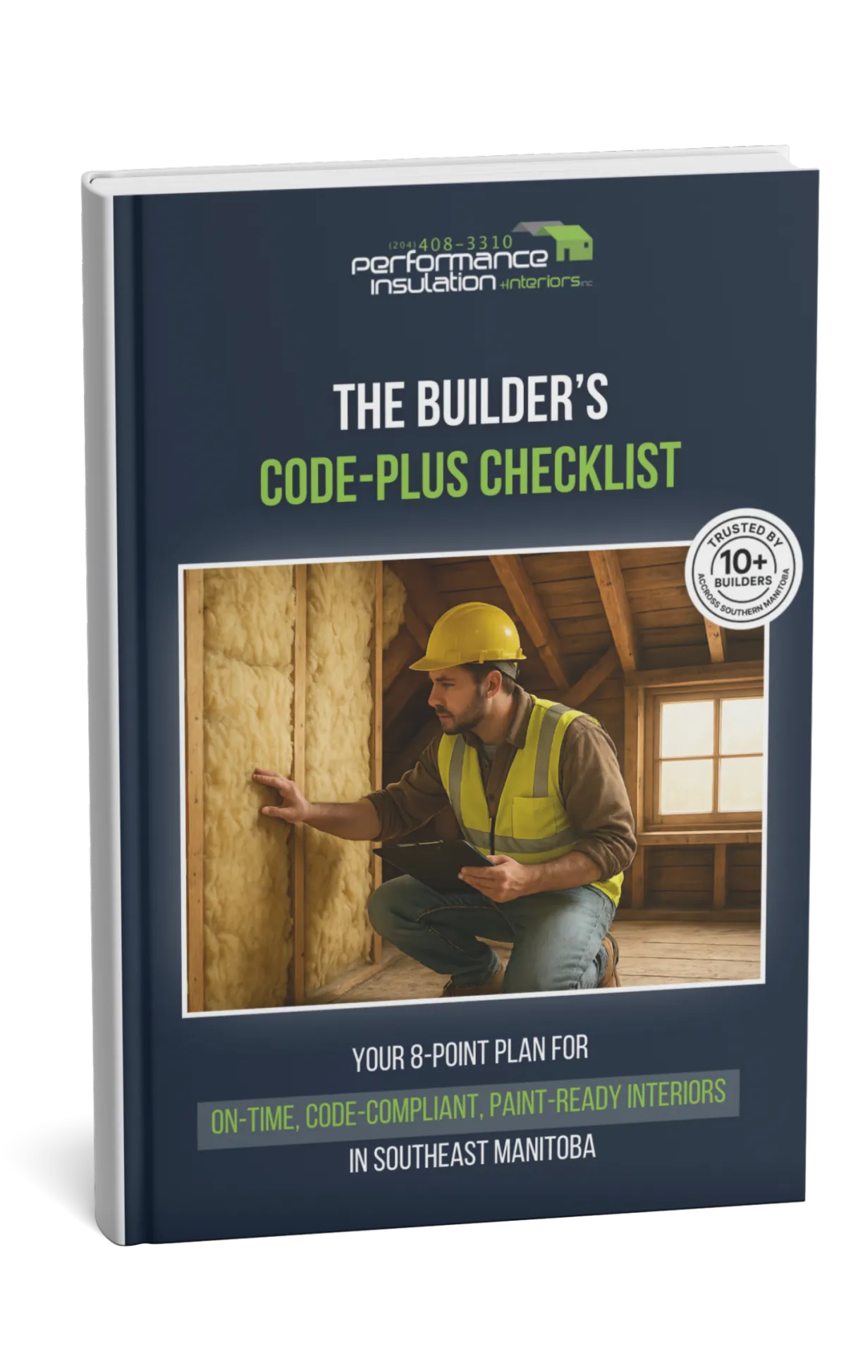We help Manitoba builders finish jobs faster and pass inspections with less hassle. Our Code-Plus system handles everything inside the walls. Insulation, vapor barrier, and drywall - as one team. No more finger-pointing. No more waiting. Just a clean handoff that works.